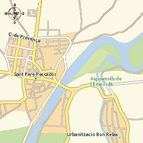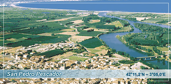 San Pedro Pescador en catalán: Sant Pere Pescador. Pueblo situado en la desembocadura del río Fluvia. Extensas playas de arena con condiciones excelentes para la práctica del surf. La población vive del cultivo de frutales. Curiosidad: Iglesia de San Miguel (1066) y el parque natural Aiguamolls. San Pedro Pescador auf katalanisch: Sant Pere Pescador. An der Flußmündung bevorzugtes Windsurfgebioet des Fluvia gelegene Ortschaft mit 6 km langem Sandstrand. Die Bewohner leben überwiegend von Obstanbau. Sehenswürdig: Kirche San Miguel (1066) ebenso das anliegende Naturschutzgebiet Aiguamolls. San Pedro Pescador, en catalan Sant Pere Pescador. Situé à l'embouchure du fleuve Fluvià c'est une zone privilégiée pour le windsurfing. Large plage de sable fin. La population cultive toutes sortes de fruits. Curiosité: l'église San Miguel (1066) et la réserve naturelle Aiguamolls de l'Empordà.
